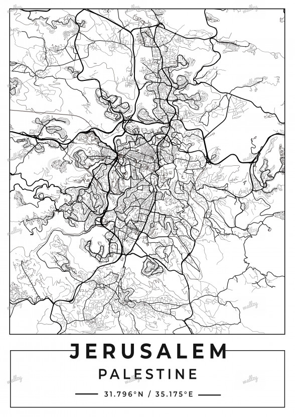 Jerusalem Palestine White With Border City Map
