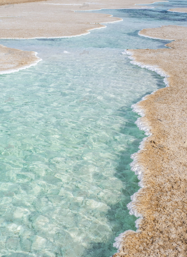 The rich colours and contrasting textures of the salt lakes deep in the Abu Dhabi desert.